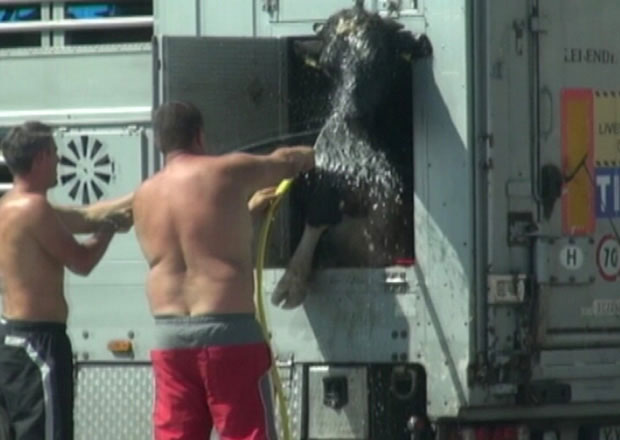 Les enquêteurs de CIWF ont suivi l’expédition de taureaux de boucherie en provenance de Hongrie et de Slovaquie jusqu’à leur destination finale en Turquie. Dans les deux cas, les taureaux ont été enfermés dans les camions durant près de 60 heures, soumis à des températures très élevées tout au long de leur voyage.Pour la première fois, nos enquêteurs ont documenté les longs délais d’attente subis par les animaux européens en Turquie. Les taureaux hongrois ont été arrêtés à un poste de douane. Faute d’installation adaptée pour décharger ou nourrir les animaux, ils sont restés dans le camion pendant 20 heures. Des défaillances dans le système automatique de distribution d'eau à bord du camion et des auges pleines d'excréments ont obligé les conducteurs à donner de l’eau manuellement aux taureaux à l'aide de caisses en plastique de fortune. Les conducteurs sont devenus agressifs envers les taureaux, utilisant des aiguillons électriques et des bâtons. Il n’est pas sûr que tous les taureaux aient pu accéder à l'eau.